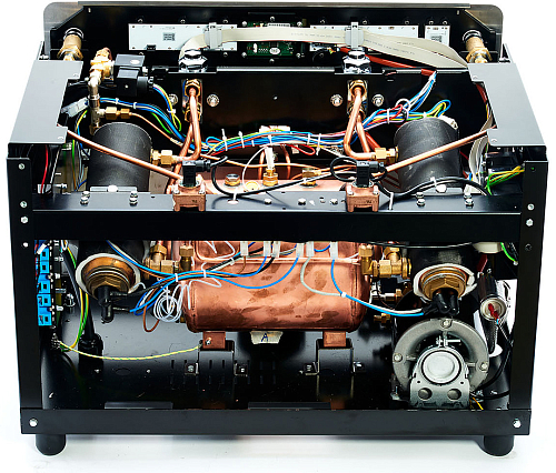 • Оснащена PID-контроллерами, TFT- дисплеем (2,8 дюйма) и тремя бойлерами (паровой бойлер - 8 литров, бойлера на каждую группу - 1 литр).