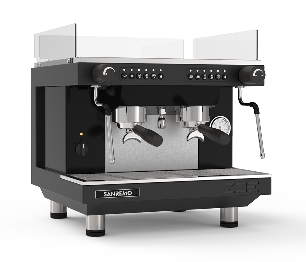 Кофемашина Sanremo Zoe Compact 2GR SAP черная полуавтоматическая, используется для приготовления эспрессо и других кофейных напитков в кофейнях, барах и ресторанах.