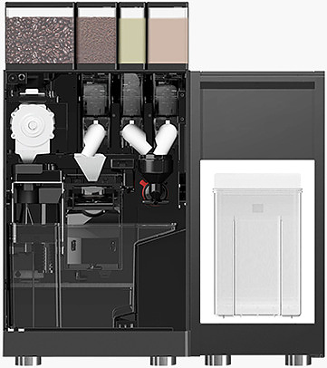 ​В комплект поставки входят бункер для зерна, 3 бункера для растворимых ингредиентов, емкость для сбора кофейного жмыха, каплесборник и помпа для работы от бутилированной воды.