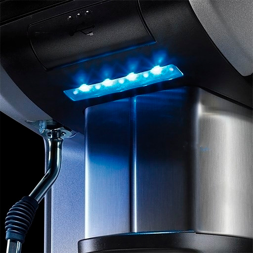 • LED-подсветка - область подачи напитка подсвечивается разноцветными светодиодами при готовности машины к работе, подачи напитков и очистке машины