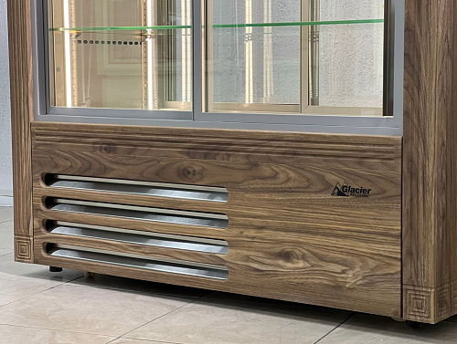 2.Обшивка корпуса промышленной ламинацией в любой текстуре из предложенных. В этом случае наружние габариты витрины увеличатся на 4 см (доп.опция)