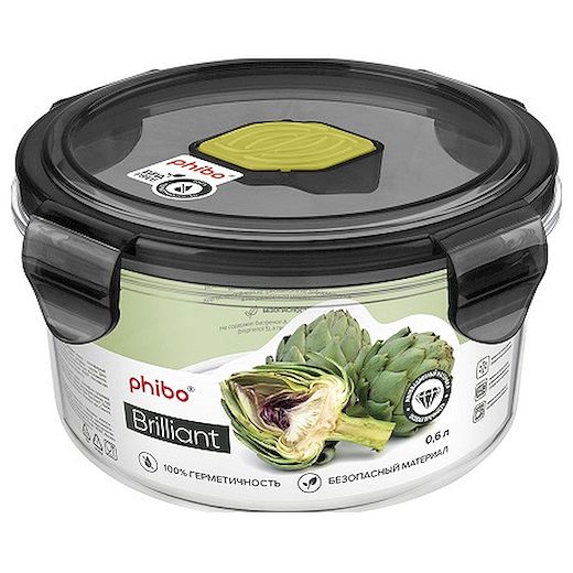 Контейнер для продуктов круглый 0,6 л. d=12,5 см. h=6,5 см. герметич. с клапаном "Бриллиант" /1/12/