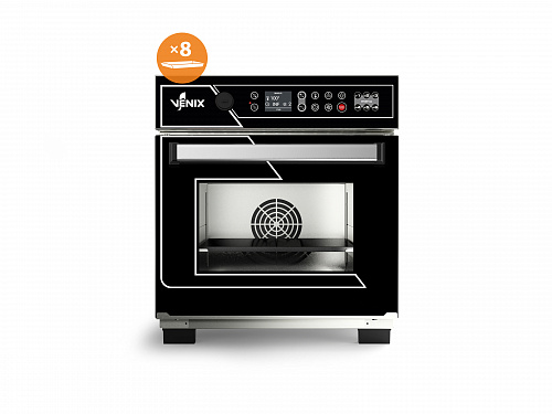 Конвекционная печь Radax Venix SPZLR0HER00 используется на предприятиях общественного питания и торговли для приготовления порционных блюд на пару. Модель оснащена цветным 2,4-дюймовым ЖК-дисплеем с цифровым управлением и 100 программами. Камера выполнена из нержавеющей стали AISI 304.