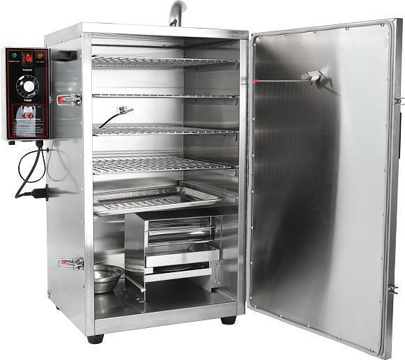 Интуитивно понятная панель управления с таймером. Копчение происходит на древесной щепе.