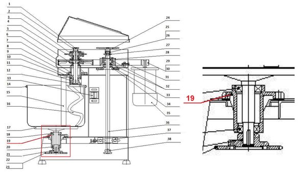 Корпус опорного узла вала #19(15) для машин тестомесильных т.м. EKSI серии EH, мод. EH-20/-30(-2v)