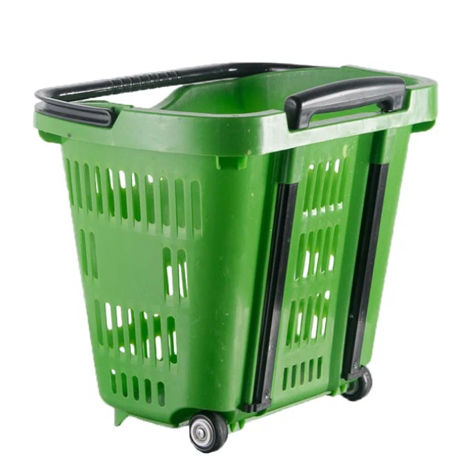Корзина-тележка т.м. EKSI на 2 колесах пластиковая, 34 л, GN используется в крупных гипермаркетах и магазинах самообслуживания.