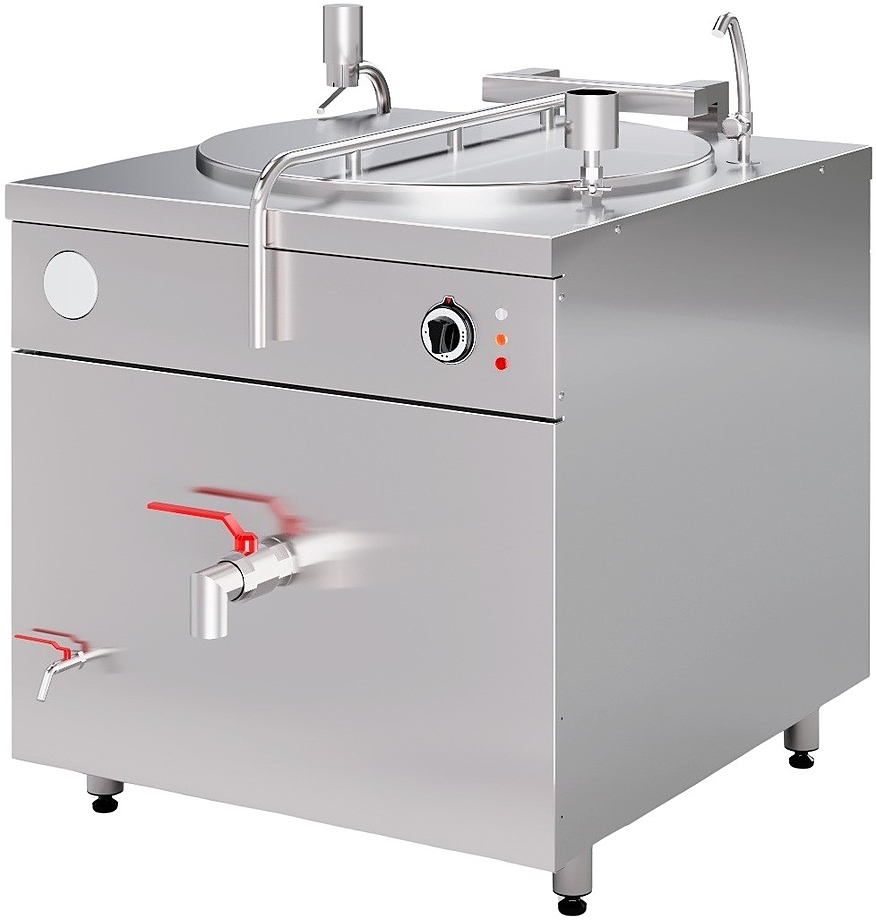 Имеется метка верхнего уровня залива воды. Котёл можно использовать для варки, тушения или припускания любых продуктов. Слив жидкости из котла возможен с помощью профессионального сливного крана большой пропускной способности. Для чистки или заливки воды на верхней панели котла расположен заливной кран из нержавеющей стали. Котел изготовлен из нержавеющей стали. Сосуд выполнен из аустенитной нержавеющей стали AISI 304 толщиной 1,5мм.