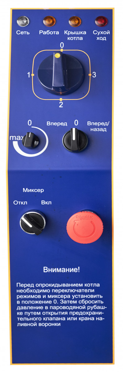 • Слив готового продукта осуществляется путем ручного опрокидывания варочного сосуда