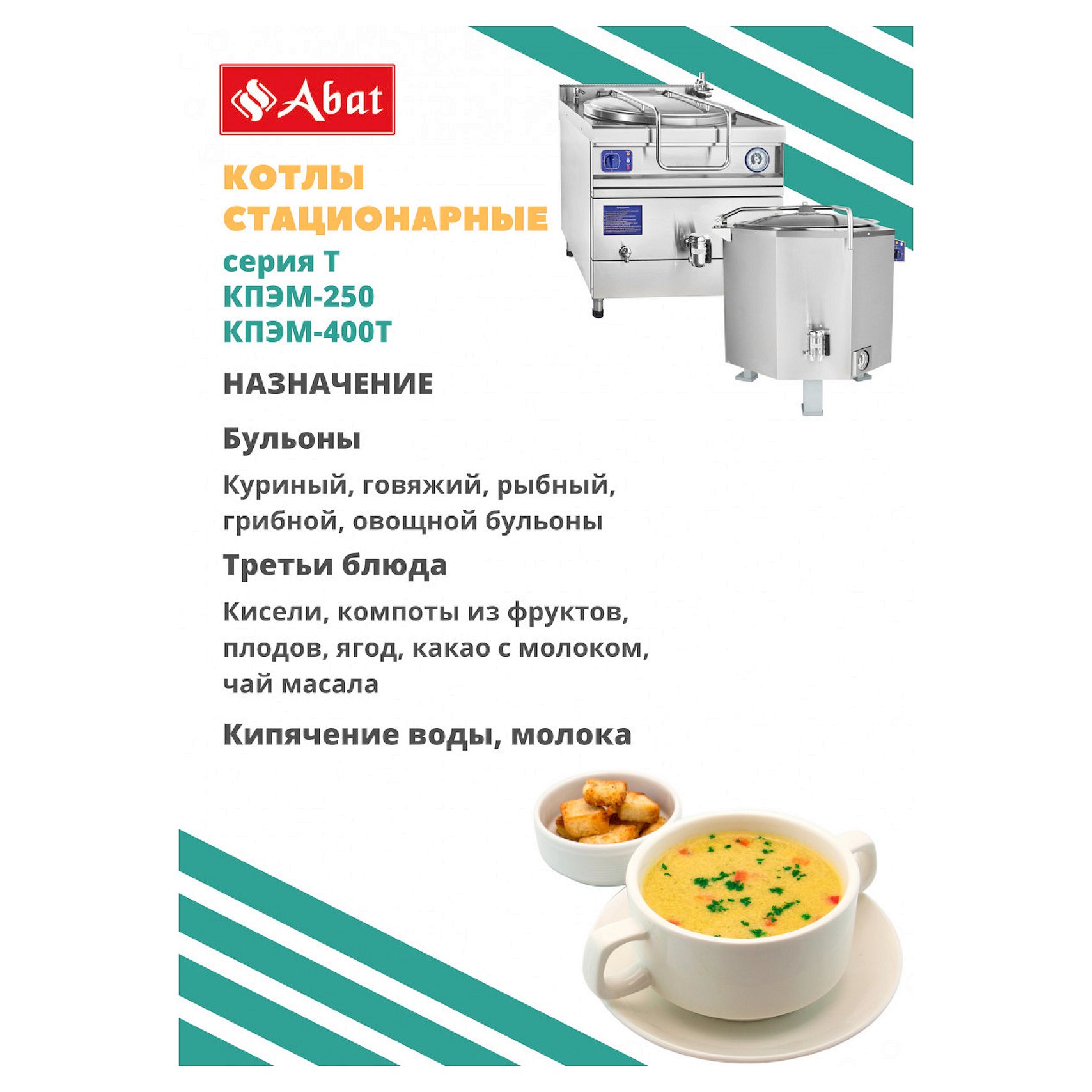 Купить котлы пищеварочные для ресторанов, баров, кафе, столовых, магазинов, других предприятий общественного питания можно оформив заказ через сайт или позвонив в Траст Холод по тел. +7 (495) 278-08-37, 8-800-555-24-57. У наших менеджеров Вы сможете уточнить цену на Котел пищеварочный Abat КПЭМ-60/7 T, наличие и характеристики товара, варианты доставки, а также возможность лизинга и кредита.