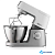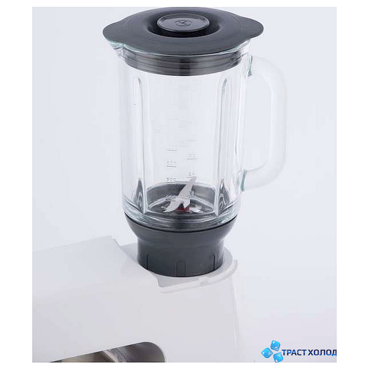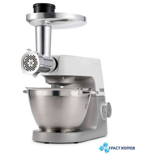 В комплект входят: венчик для взбивания, мясорубка, стеклянный блендер, крюк для теста и К-образная насадка, лопатка.