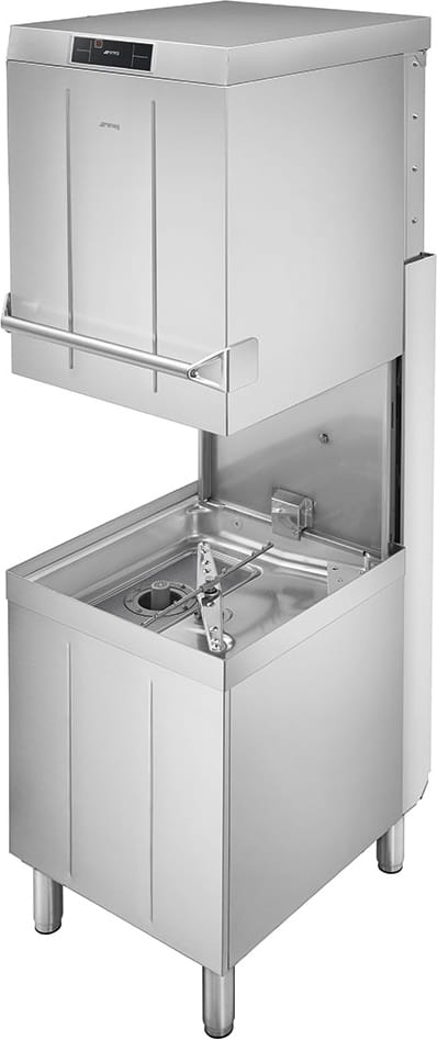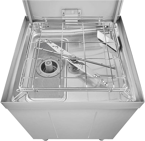 Купольная посудомоечная машина SMEG HTY 520DSH под кассеты 50x50 см, с дозатором ополаскивающих и моющих средств, конденсатор пара, водоумягчитель, др предназначена для мытья всех типов посуды: тарелок, чашек, стаканов, столовых приборов, а также для мытья противней и гастроёмкостей GN 1/1. Моющий бак изготовлен из нержавеющей стали AISI304. Рекомендуется к применению на предприятиях общественного питания всех типов.