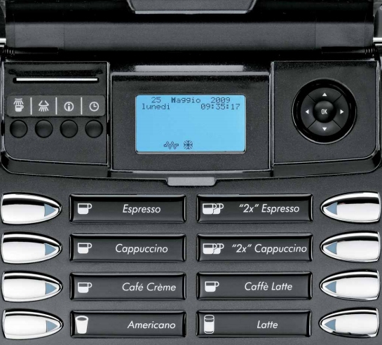 В данной модели 16 программируемых напитков, кран подачи кипятка, кран подачи пара, 2 кофемолки-дозатора, 2 бункера для зерна, диаметр группы 44 мм. Опционально может быть оснащена одним устройством Turbosteam. Производительность 200 чашек эспрессо в час.