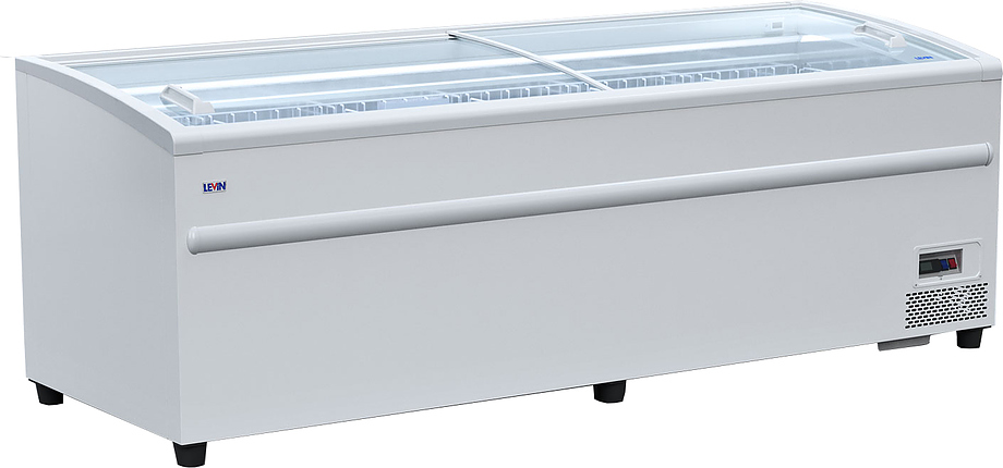 Ларь-бонета LEVIN ALPINA 210 НТ/СТ (RAL 9016) с корзинами предназначен для заморозки, долгосрочного хранения и демонстрации продуктов и напитков на предприятиях розничной торговли.