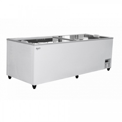 Система автоматической оттайки горячим газом облегчает процесс ухода за оборудованием. Применяемые современные энергосберегающие технологии значительно снижают хладопотери, тем самым позволяя уменьшать энергопотребление. Ларь оснащен раздвижными крышками из низкоэмиссионного стекла с напылением против запотевания. Встроенная светодиодная подсветка внутреннего объема устройства гарантирует оптимальный обзор размещенных внутри продуктов. Регулируемые по высоте ножки позволяют установить ларь на любой напольной поверхности. Испаритель / конденсатор - труба, расположенная по внутреннему и внешнему корпусу бонеты выполнена из алюминия. Материал внутренней поверхности бонеты - буклированный аллюминий.