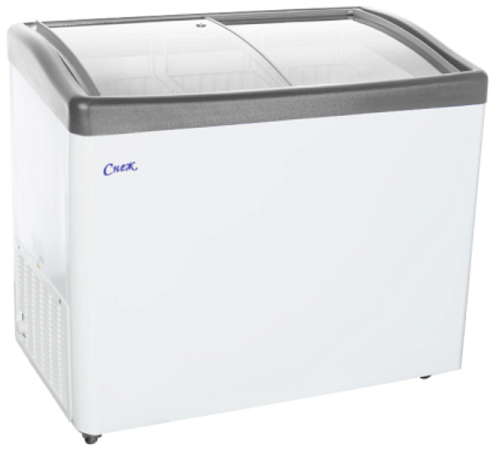 Морозильный ларь СНЕЖ МЛГ 350 с гнутыми стеклянными стеклами изготовлен из российских материалов и отдельных импортных комплектующих. Теплоизоляция морозильного ларя выполнена из качественного пенополиуретана и дает возможность даже при длительном отключении электроэнергии сохранять продукты в замороженном состоянии. Этому способствуют и специальные энергосберегающие, травмобезопасные, раздвижные стеклянные шторки. Внутренняя поверхность морозильного ларя отделана тисненым алюминием и покрыта пищевым лаком, позволяющим контактировать продуктам питания со стенками с учетом всех требований гигиены. На морозильных ларях установлены надежные компрессоры Danfoss (Германия). Используется экологически безопасный хладагент - R134А, разрешенный международной конвенцией. Порошковая покраска металлического корпуса позволяет надежно окрашивать морозильные лари в любой цвет RAL. Возможно нанесение любых логотипов. Все морозильные лари комплектуются корзинами.