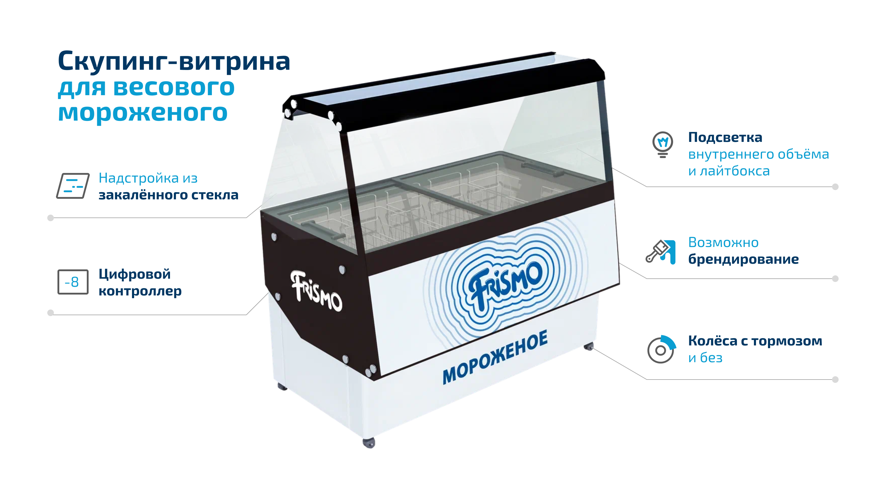 Ларь-витрина для мягкого мороженого FROSTOR Frismo Scooping-9 предназначен для демонстрации, охлаждения и долгосрочного хранения мягкого мороженого на предприятиях общественного питания и торговли.