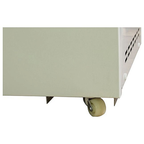 Механическую прочность и надежность ларя обеспечивает внутренняя обшивка корпуса из антикоррозийного текстурированного алюминия. Для удобства перемещения имеются 4 поворотные колесные опоры, которые не оставляют следов на полу.