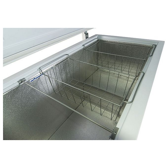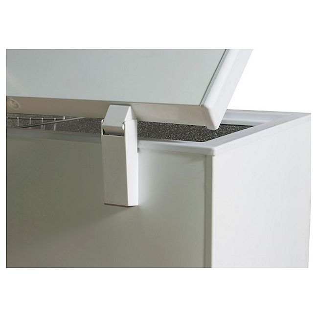 Механическую прочность и надежность ларя обеспечивает внутренняя обшивка корпуса из антикоррозийного текстурированного алюминия. Для удобства перемещения имеются 4 поворотные колесные опоры, которые не оставляют следов на полу.