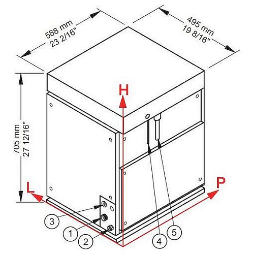 Корпус выполнен из нержавеющей стали AISI 304 с отделкой Scotch Brite, испаритель - из алюминиевого сплава Anticorodal, рама - из нержавеющей стали, детали - из пластика ABS.