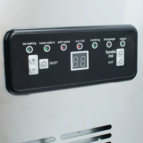 К преимуществам льдогенератора следует отнести автоматическую проверку наличия уровня воды в аппарате, «умное» электронное управление, индикаторы готовности льда, самоочищение.