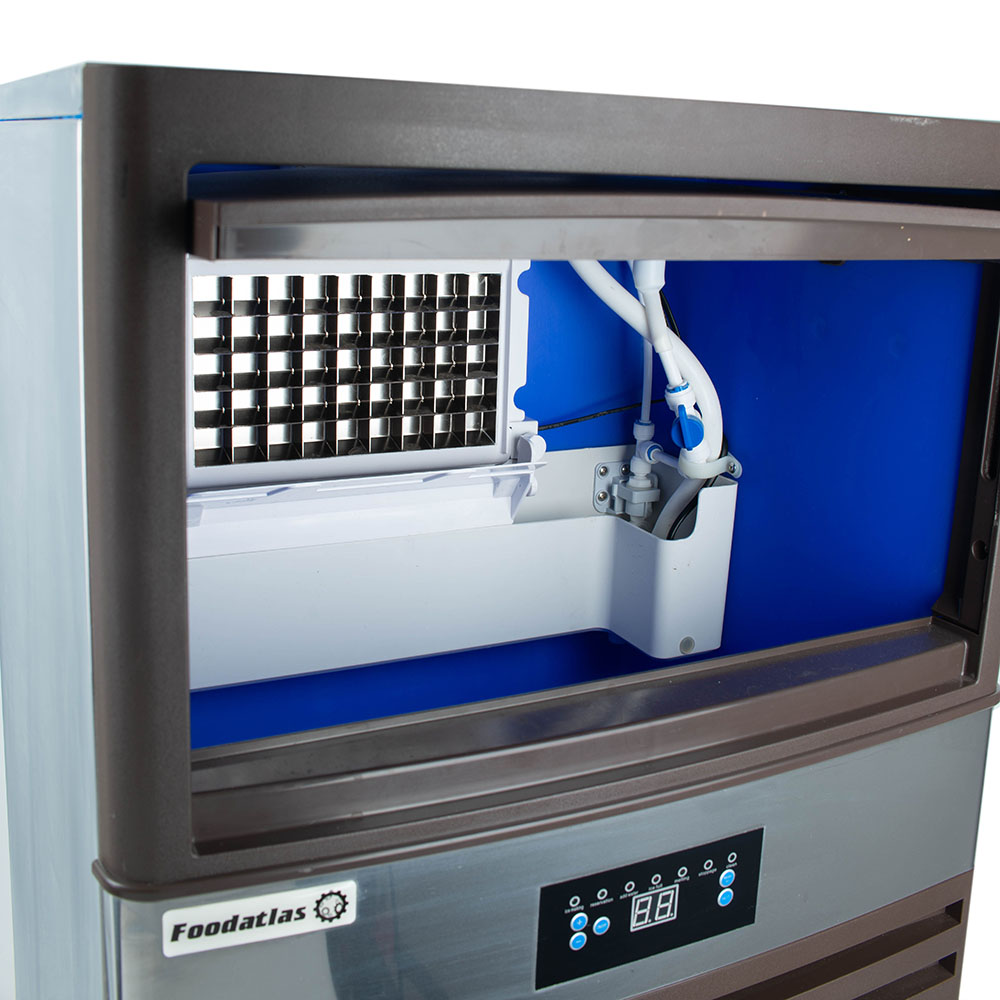 Льдогенератор Foodatlas BY-550F (куб, проточный) предназначен для приготовления кубикового льда, который используется для охлаждения различных напитков на предприятиях общественного питания и торговли. Корпус выполнен из стали SS201, камера хранения - из пластика, радиатор - из алюминия, конденсатор, испаритель и трубы радиатора - из меди.