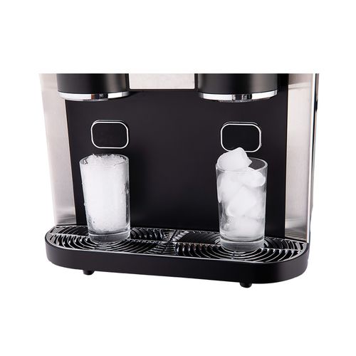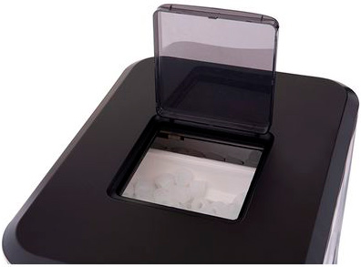 Модель оснащена встроенным измельчителем и диспенсером для льда. Льдогенератор может как подключаться к водопроводу, так и работать в автономном режиме. Изделие выполнено из нержавеющей стали и пластика.