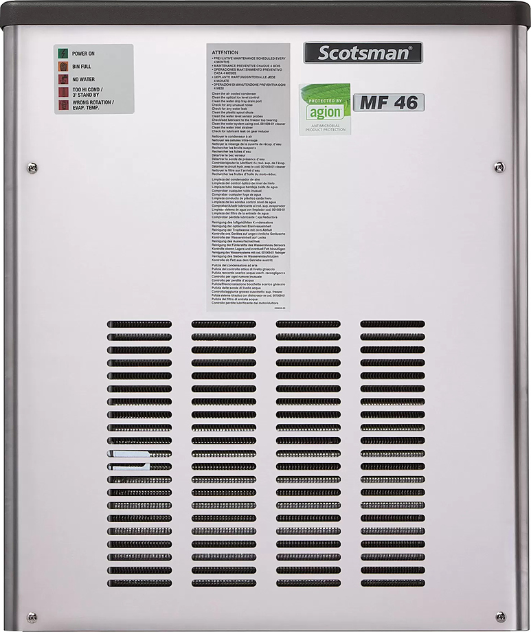 Льдогенератор SCOTSMAN MF 46 AS OX используется на предприятиях общественного питания и торговли для приготовления гранулированного льда, который применяется для охлаждения прохладительных напитков и емкостей с жидкостями.