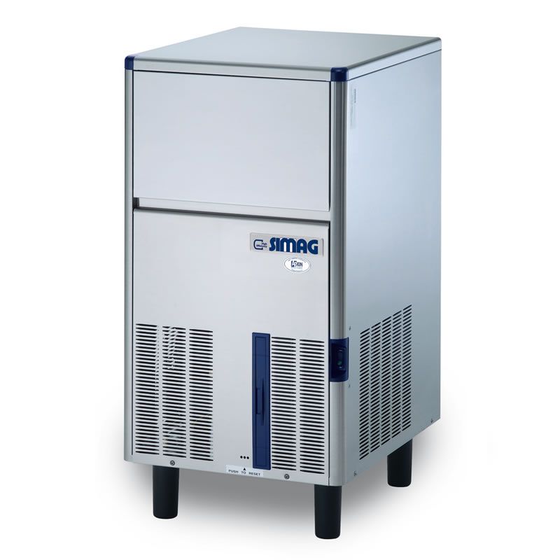 Льдогенератор SIMAG SDE 64 на ножках предназначен для изготовления и хранения пальчикового льда, применяемого впоследствии при охлаждении коктейлей, напитков или продуктов в различных заведениях общественного питания (ресторанах, барах). Данная модель имеет производительность 63 кг в сутки или 3000 шт в сутки, воздушную систему охлаждения, бункер вместимостью 20 кг и расход воды 129.6 л в сутки.