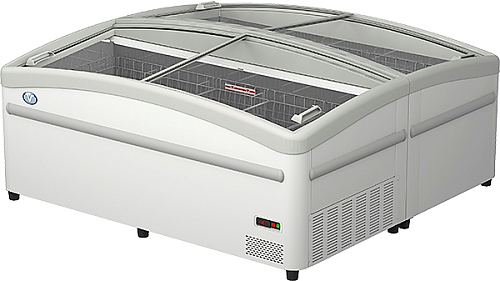 Система автоматической оттайки горячим газом облегчает процесс ухода за оборудованием. Теплоизоляционная стенка толщиной 80 мм и применяемые современные энергосберегающие технологии значительно снижают хладопотери, тем самым позволяя уменьшая энергопотребление. Ларь оснащен раздвижными стеклянными крышками с напылением против запотевания. Встроенная подсветка внутреннего объема устройства гарантирует оптимальный обзор размещенных внутри продуктов.