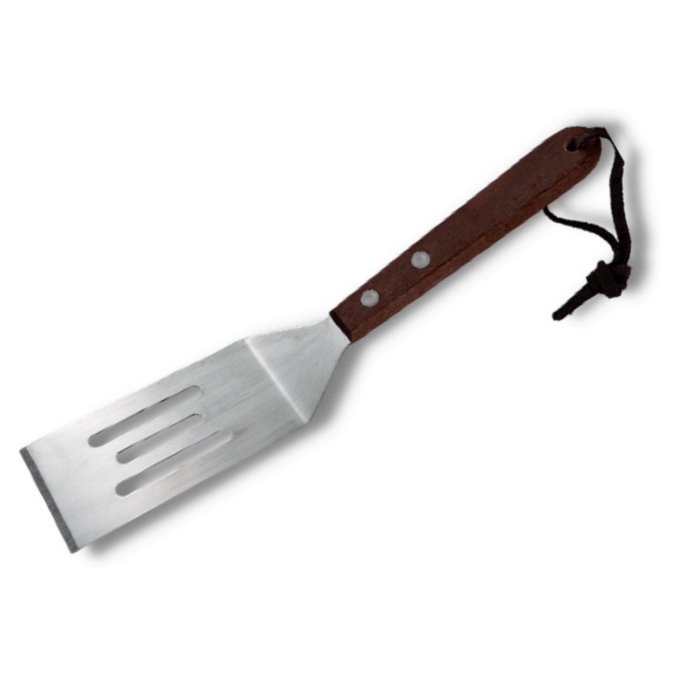 Лопатка 20,5 см. изогнутая рабочая часть 8*4 см. нерж. перфорированная узкая с деревянной ручкой MGsteel /1/6/