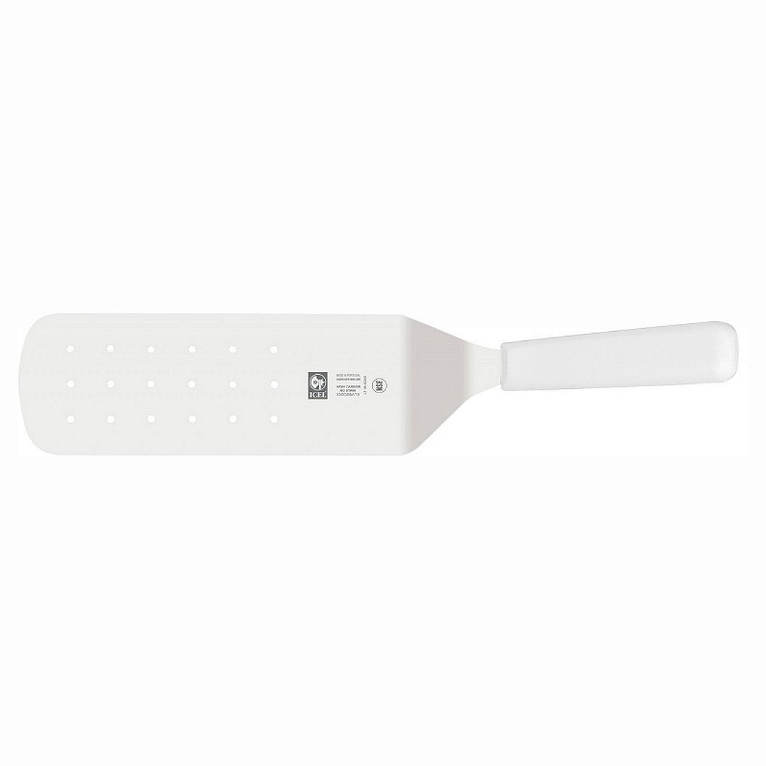 Лопатка 37,5 см. изогнутая рабочая часть 19,5*7,5 см. нерж. перфорированная широкая с пластик. руч белая Icel /1/