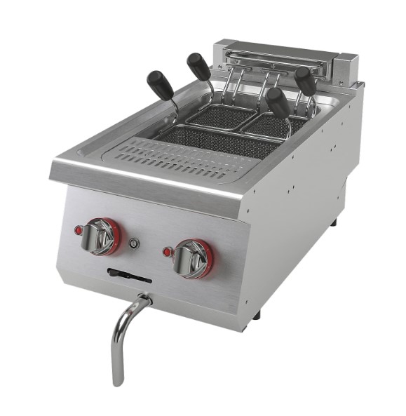 Макароноварка электрическая Vortmax SEP 74 изготовлена из нержавеющей стали, толщина покрытия 15/10 мм. 1 ванна на 13 литров. Контроль температуры осуществляется при помощи термостата. Трёхуровненый переключатель температуры. Оснащена краном для подачи воды, автоматической системой заполнения ванны водой, клапаном слива. Мощность 7,5 кВт, габариты в упаковке 420*800*580, вес брутто 30 кг, 380 В. В комплект входят корзины 1/3х1шт, 1/6 правая х1 шт, 1/6 левая х1шт.