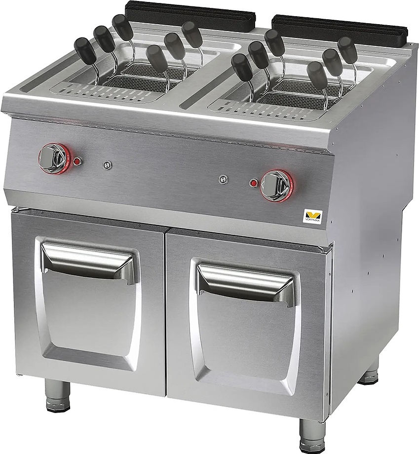 Макароноварка Vortmax SGP 78, газовая предназначена для быстрого и эффективного приготовления макаронных изделий в заведениях с высокой загрузкой: ресторанах, кафе, столовых и фастфуд-сетях. Модель оснащена двумя ваннами по 13 литров, каждая из которых укомплектована тремя корзинами для одновременного приготовления разных видов пасты. Газовая система нагрева обеспечивает быстрый выход на рабочую температуру и равномерный нагрев воды.