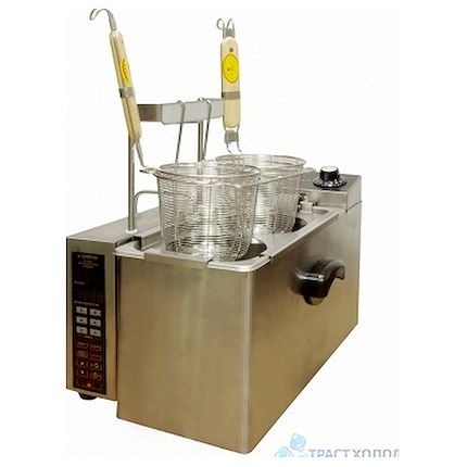 Макароноварка Kocateq ESWBT4L применяется в заведениях общепита (столовых, ресторанах, кафе) для отваривания макаронных изделий, кукурузы, пельменей и других продуктов. Модель имеет объём 5 л, 2 корзины размером 130х120 мм, температурный режим от 90 до 100 °С и аналоговую панель управления.