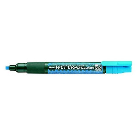 Меловой маркер Pentel Wet Erase, пр-во Япония, цвет голубой, с двусторонним наконечником, который можно менять: скошенный и круглый, шириной 2-4 мм.