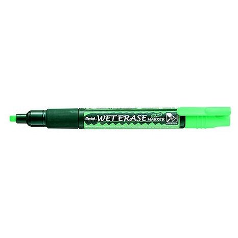 Меловой маркер Pentel Wet Erase, пр-во Япония, цвет зеленый, с двусторонним наконечником, который можно менять: скошенный и круглый, шириной 2-4 мм.