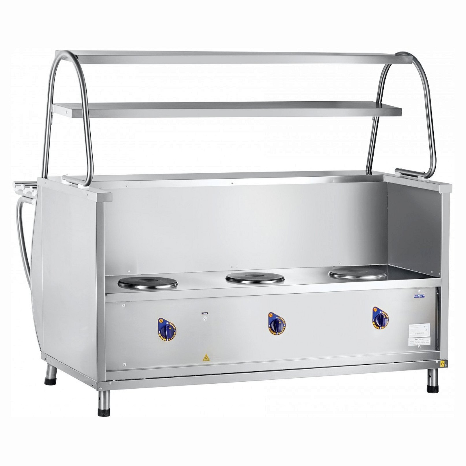 Мармит 1-х блюд Abat (Чувашторгтехника) ПМЭС-70М-01 используется для непродолжительного сохранения первых блюд в наплитных котлах в горячем состоянии, а также для раздачи их потребителям. Конфорки мармита оснащены регулировкой мощности, а двойная полка над мармитом оборудована лампой подсветки. На ней Вы можете выкладывать порционные блюда.
