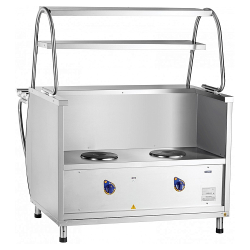 Мармит Abat (Чувашторгтехника) ПМЭС-70М используется для непродолжительного сохранения первых блюд в наплитных котлах в горячем состоянии, а также для раздачи их потребителям. Конфорки мармита оснащены регулировкой мощности, а двойная полка над мармитом оборудована лампой подсветки. На ней Вы можете выкладывать порционные блюда.