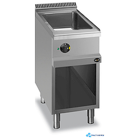 Мармит располагается на открытой подставке и имеет одну ванну из нержавеющей стали, которая расчитана на гастроемкости размера GN1/1.