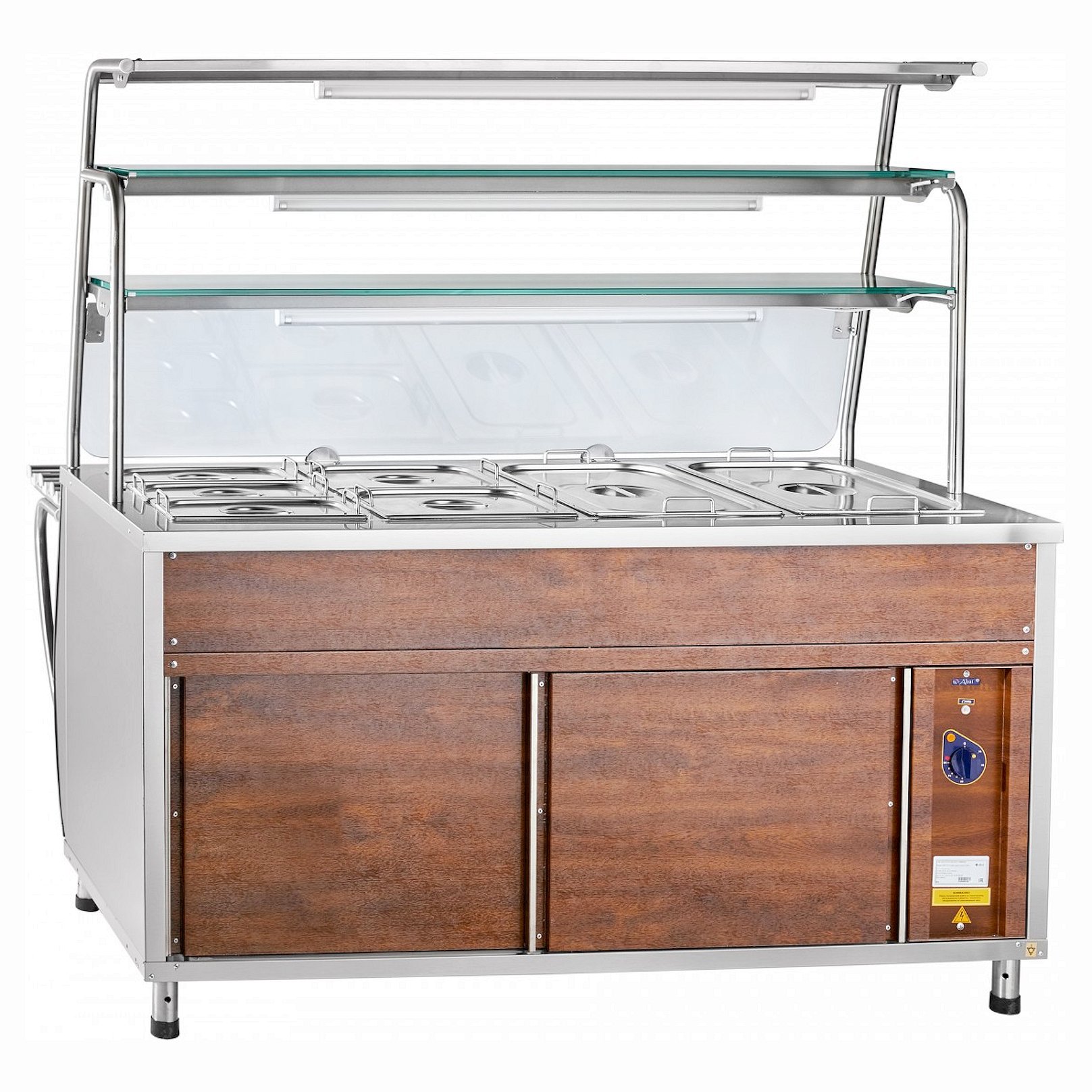 • Двойная полка над мармитом с подсветкой для выкладки блюд