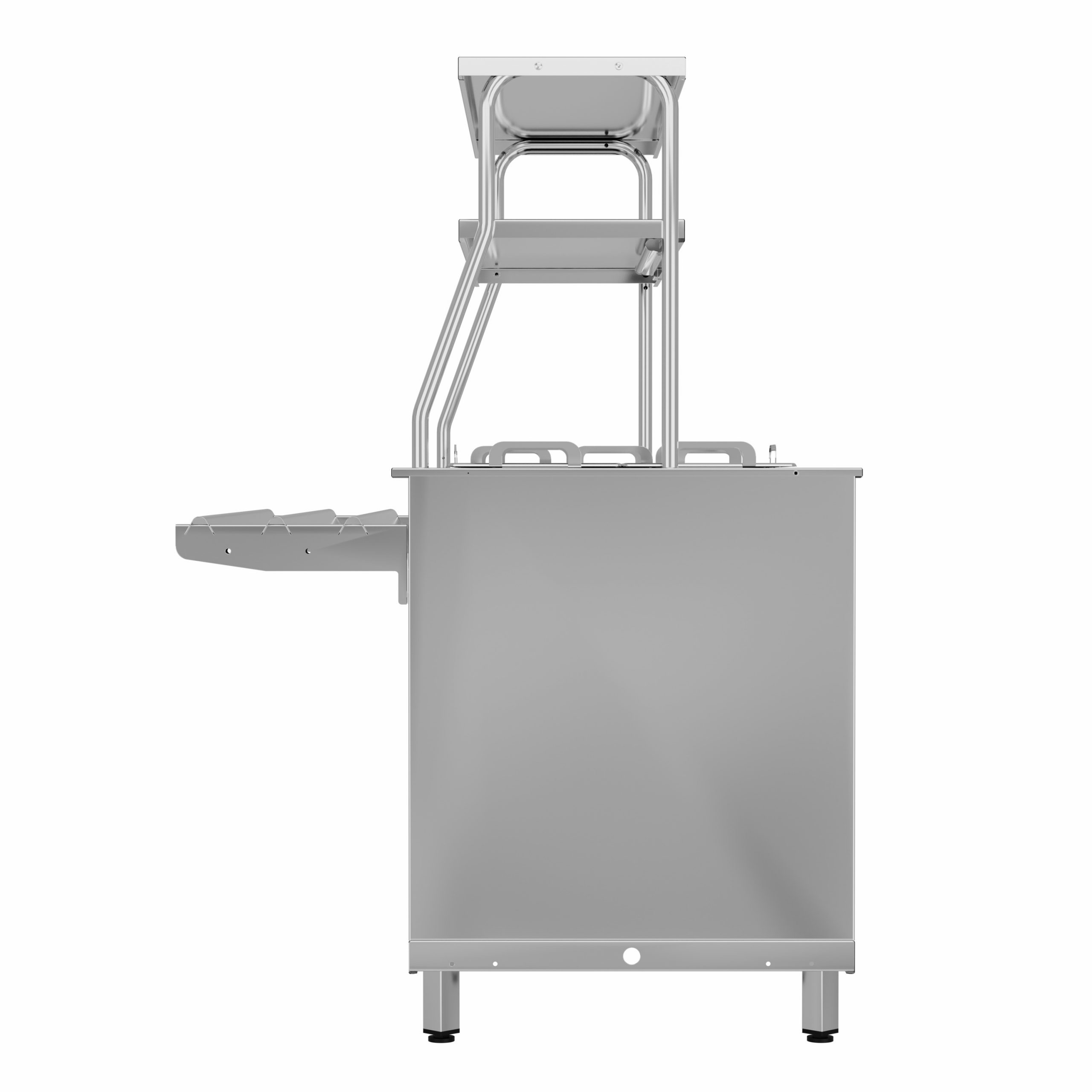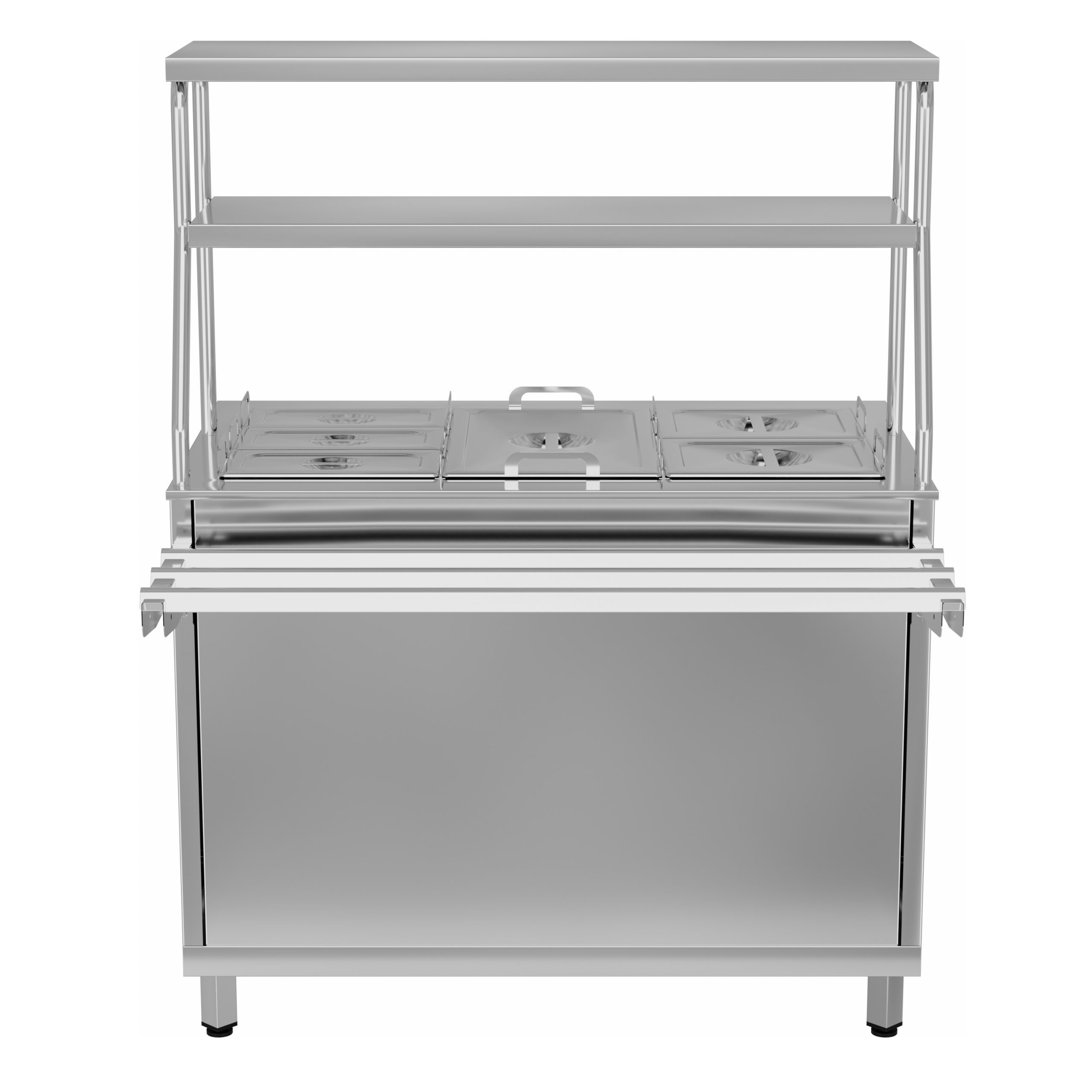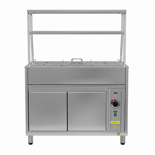 Верхние полки над мармитом служат для выкладки порционных блюд или напитков.