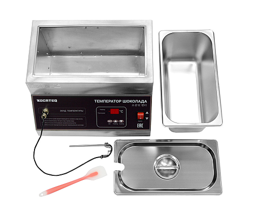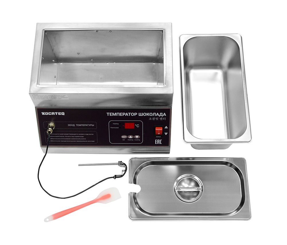 Мармит шоколада и глазурей Kocateq DHC meltingchoc mini предназначен для плавления и поддержания в горячем состоянии шоколада и глазури на предприятиях общественного питания и торговли. Модель оснащена ванной под гастроемкость, электронным термостатом для установки температуры, термощупом и нагревательными пластинами. Корпус выполнен из нержавеющей стали AISI 201, пластины - из алюминия.
