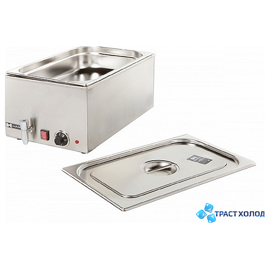 Вес нетто 9,7 кг, материал корпуса:нержавеющая сталь, в комплектацию входит гастроемкость GN1/1-150 с крышкой, возможно использование гастроемкостей GN1/3-150 (3 шт.) и GN1/2-150 (2 шт.), имеется кран для слива воды.