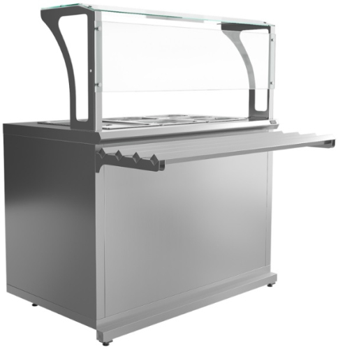 Мармит вторых блюд паровой Luxstahl МВП (С)-1200 Premium (нерж.) на полузакрытом стенде без дверей со стороны оператора, без фасада, с 1 верхней стеклянной полкой, фронтальным стеклянным экраном предназначен для кратковременного сохранения в горячем состоянии первых и вторых блюд в гастроемкостях и раздачи их потребителям, в составе линии раздачи на предприятиях общественного питания.