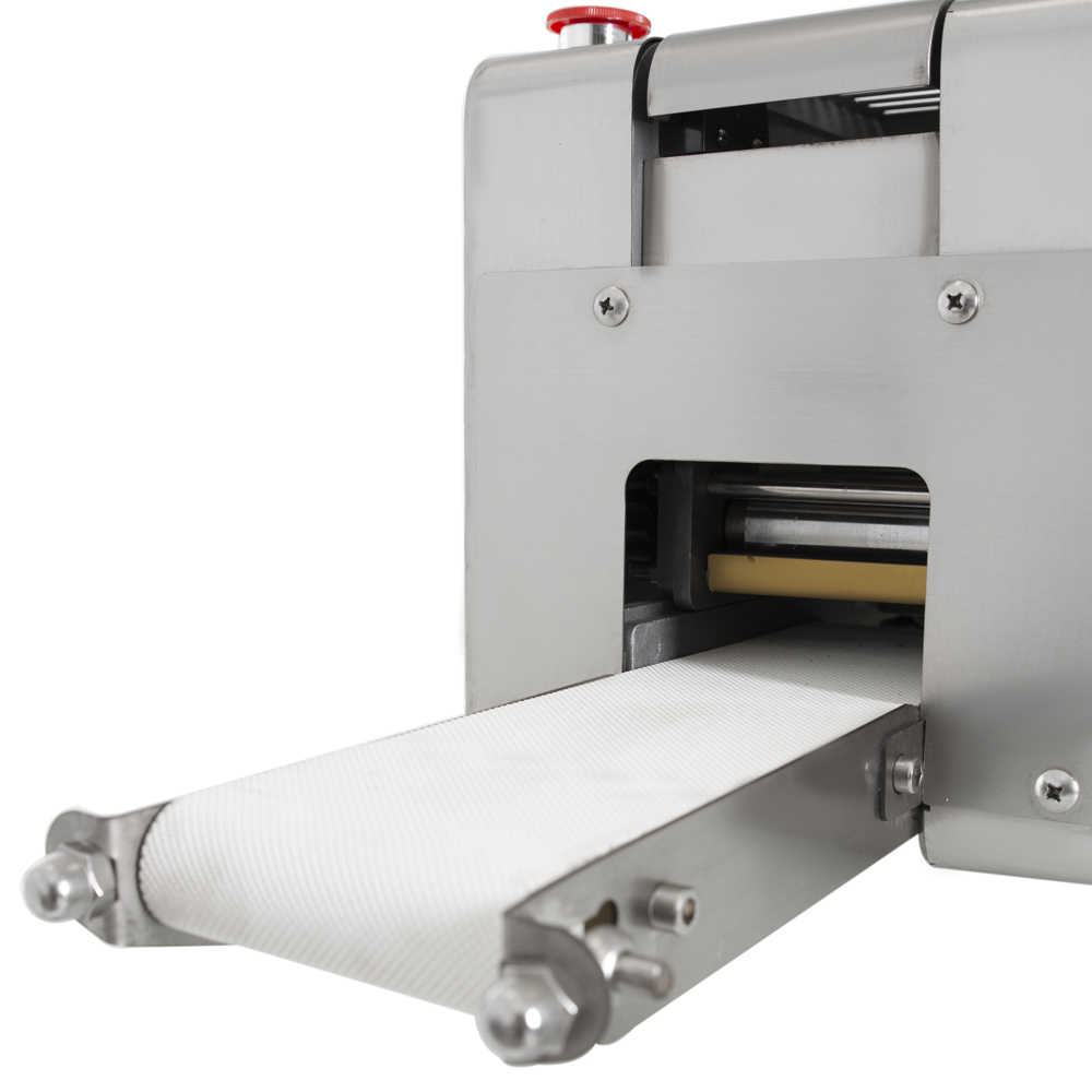 Основу конструкции аппарата составляет ряд вертикальных валков, через которые последовательно проходит тесто. В верхней части корпуса находятся регулировочные винты для изменения расстояния между валками. С их помощью можно регулировать толщину заготовок.