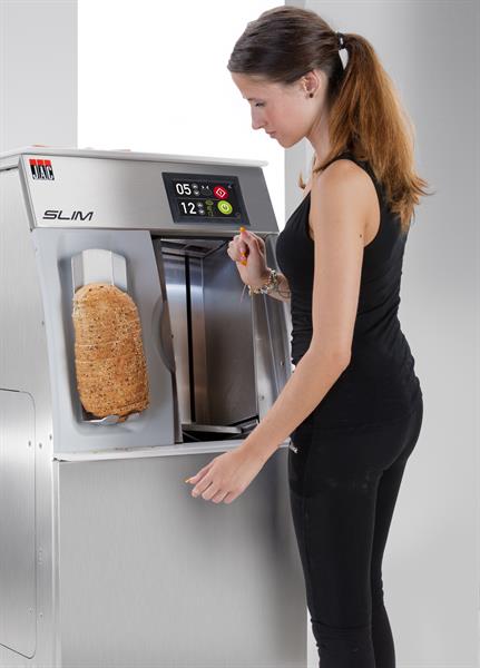 Машина хлеборезательная JAC SLIM SELF используется на предприятиях общественного питания и торговли, в пекарнях и кондитерских для автоматической нарезки с режущим диском и возможностью регулировки толщины и количества ломтиков на выходе.