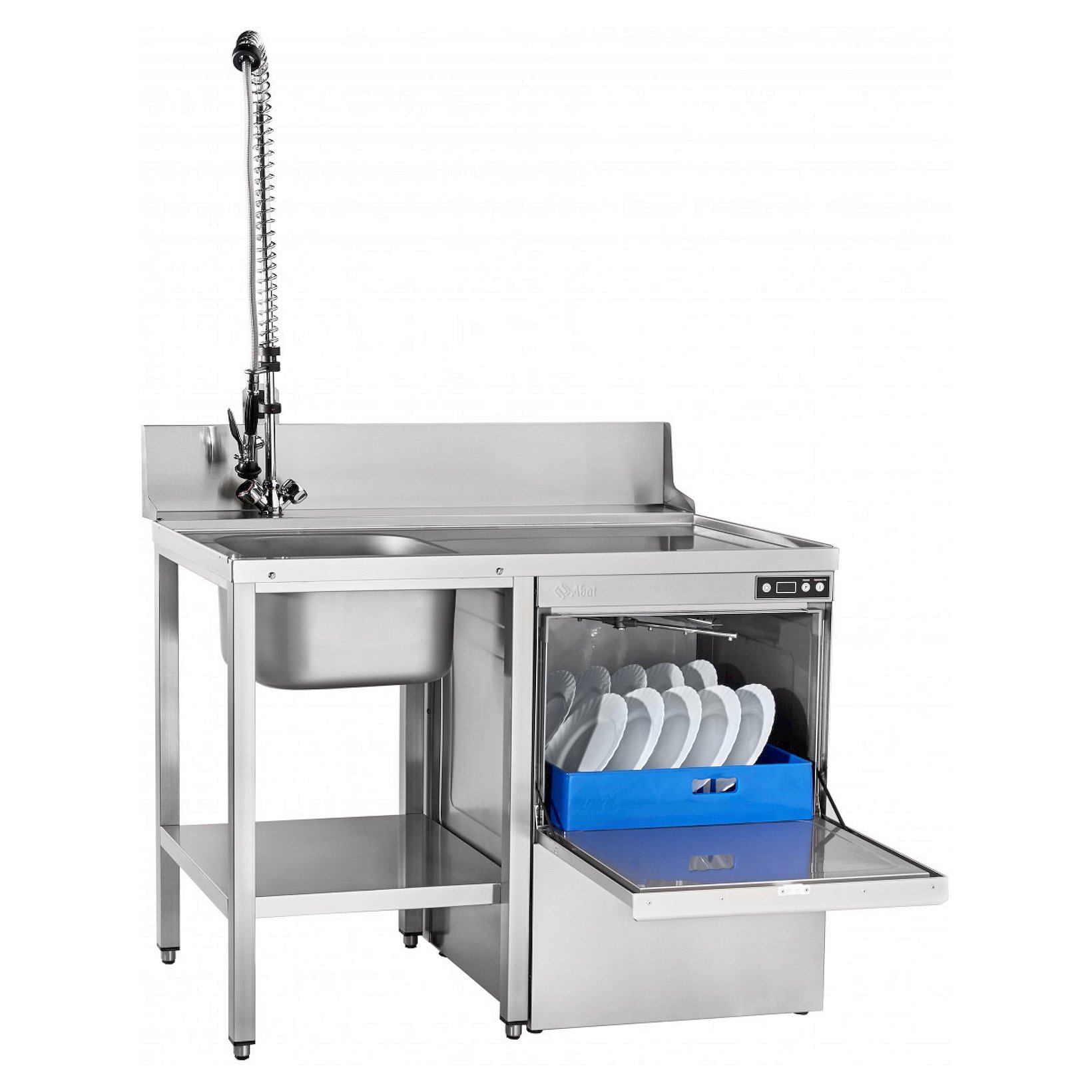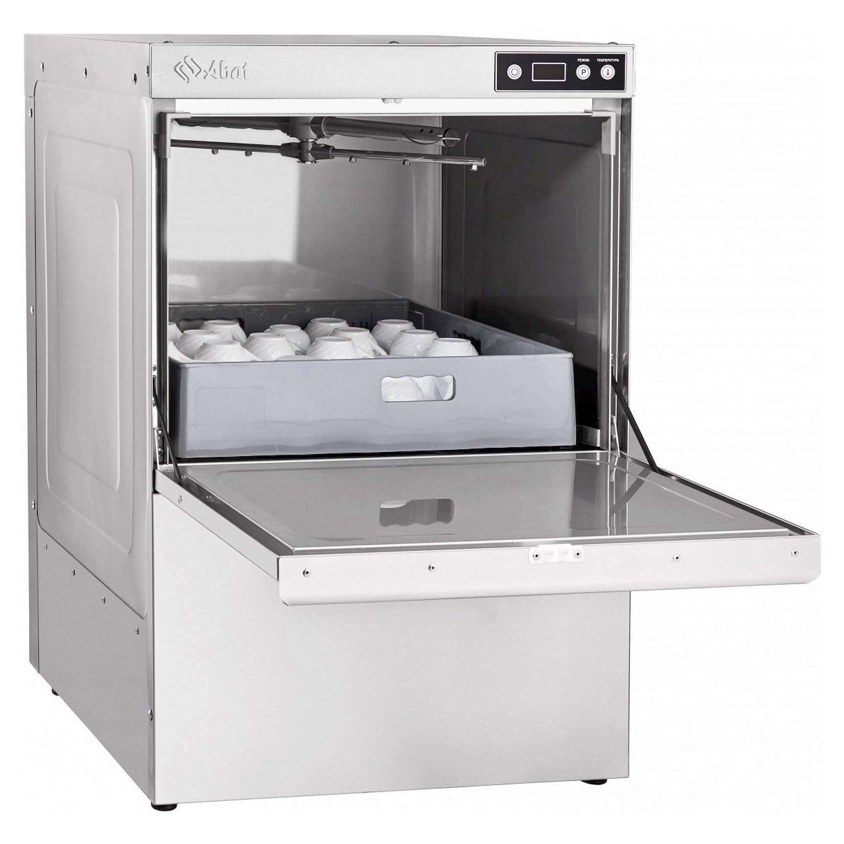 Машина посудомоечная Abat МПК-500Ф-02 фронтальная производительностью 500 тарелок в час предназначена для мытья тарелок, стаканов, столовых приборов, подносов, чашек с применением жидкого моющего и ополаскивающего средства.