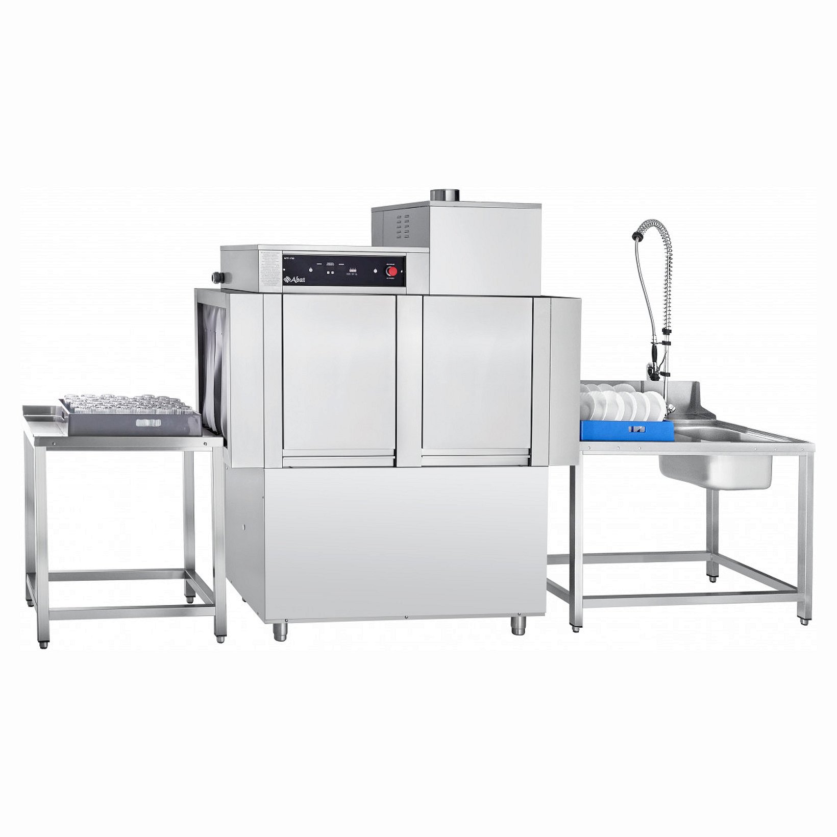 Тоннельная посудомоечная машина Abat МПТ-1700-01 с теплообменником предназначена для мытья тарелок, стаканов, чашек, столовых приборов и подносов, с применением жидких моющих и ополаскивающих средств как в небольших и средних заведениях общепита, так и на кухнях крупных предприятий (например, столовых), имеющих большой поток посетителей.