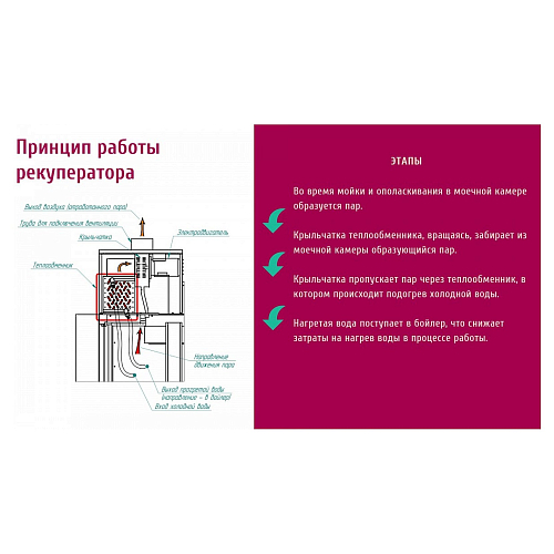 • Раздельные системы циркуляции воды для мытья и ополаскивания