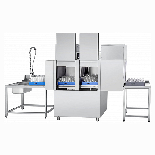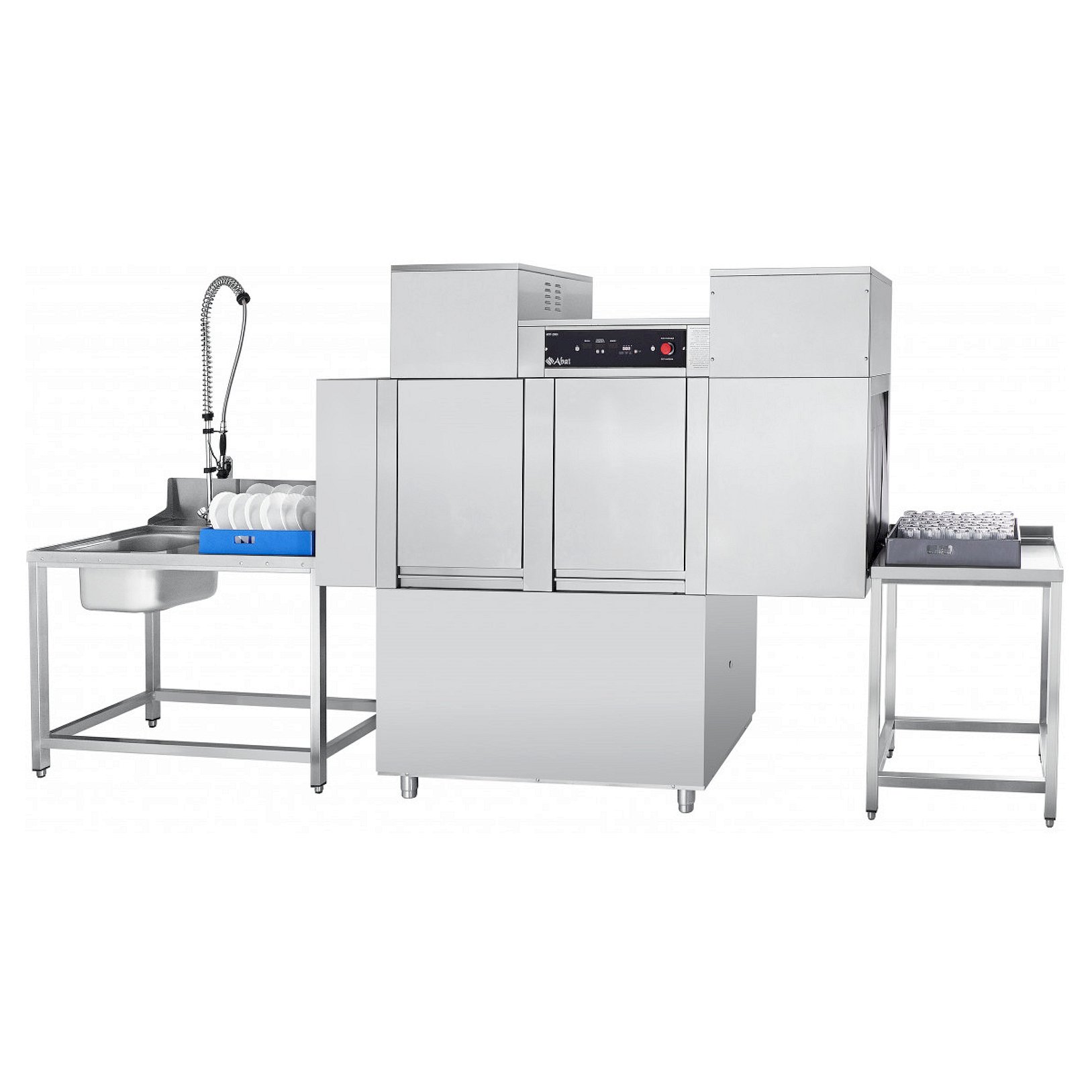 Машина посудомоечная туннельная Abat МПТ-2000 правая предназначена для мытья тарелок, стаканов, чашек, столовых приборов на малых и средних предприятиях общественного питания. Выпускается в правом (движение посуды справа налево) и левом (Abat МПТ-2000 левая) (движении посуды слева направо) исполнении.